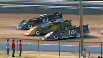 the front row. Adam Elby got a very good start and pulled out in the lead as the green flag fell. In typical fashion, Casey Kurwood in the number fourteen car wrecked the number forty car in front of the entire field save two cars. Joshua Laughton spun all the way around in the number forty car but managed to keep going although in last place thanks to the unfortunate carelessness of Dirwood in number fourteen. Meanwhile Adam Elby had pulled out to a substantial lead. Here are the cars that transferred to the main: