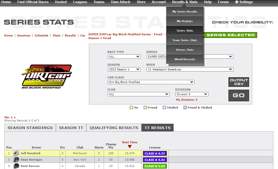 Time Trial stats can be found on the iRacing Member Website. First, select the series you want at the top of the page.