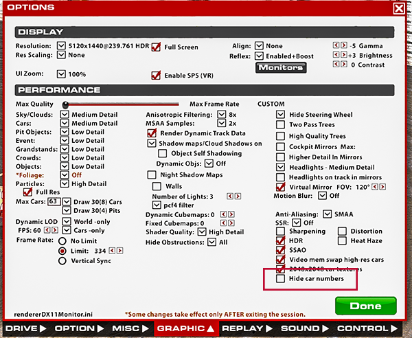 - paints not appearing when the “Hide Car Numbers” box is unchecked in the iRacing Graphic tab.