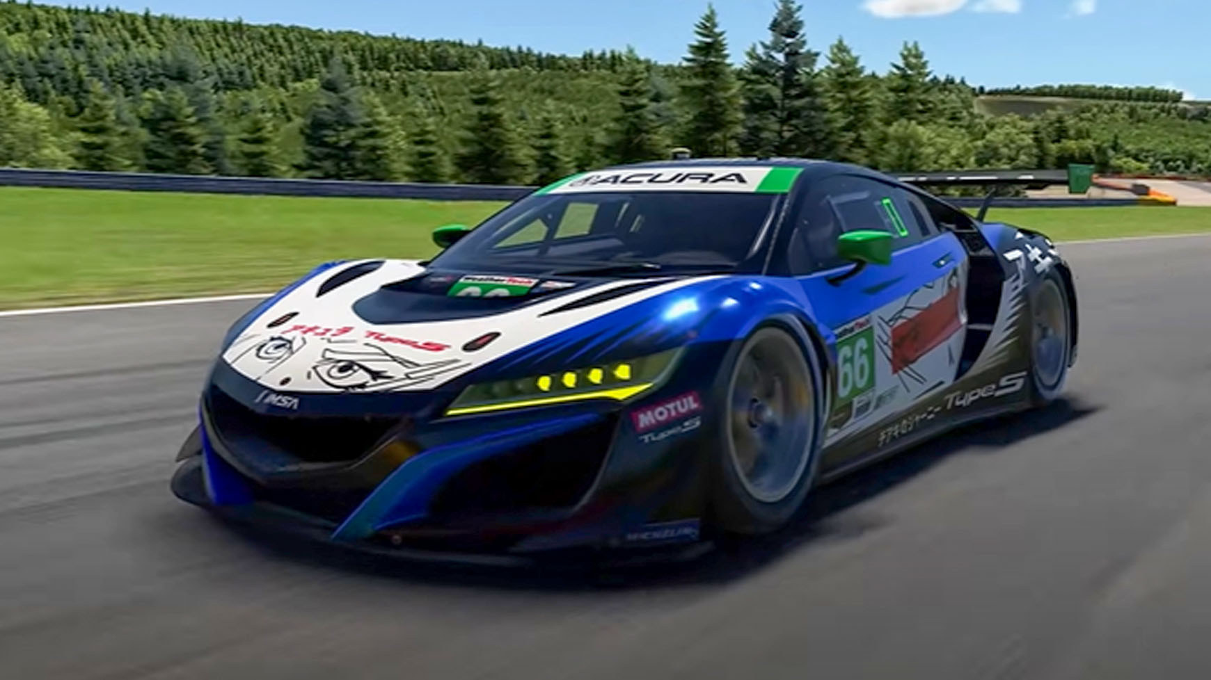 As a GT3-class vehicle, the NSX GT3 EVO 22 offers adjustable features including traction control, anti-roll bars, and rear wing settings, providing drivers with the tools to optimize performance on the track.