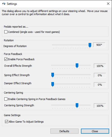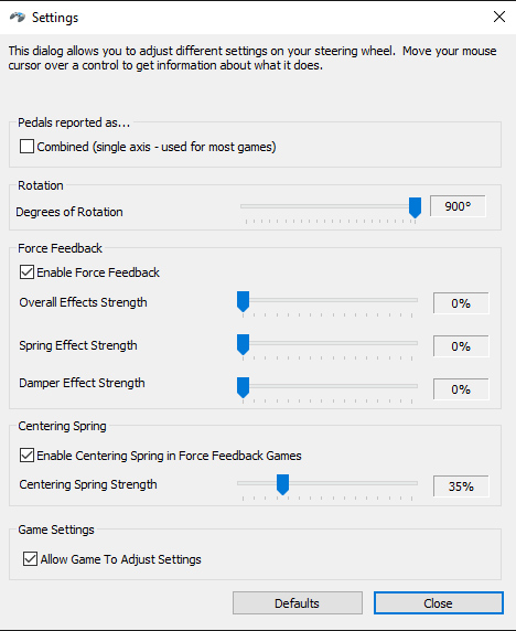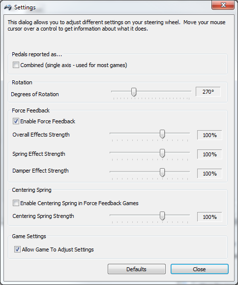 Logitech G27 Settings in Windows