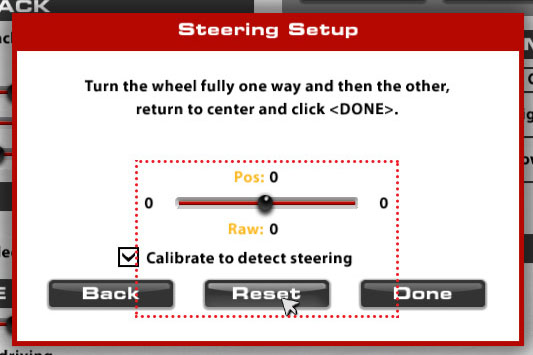 - Click reset. This zeroes the wheel at dead center as shown in the image below.