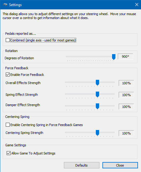 Logitech G27 Racing Wheel Settings in Windows