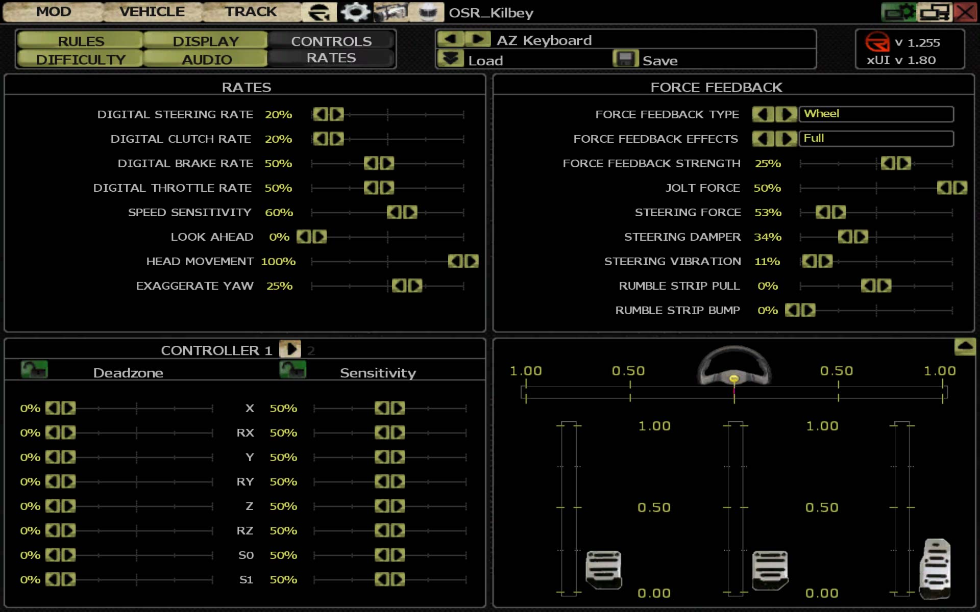 The LOOK AHEAD setting is interesting, as it simulates head movement from side to side as the car turns. It says 0% in this image but I actually prefer it around 50%. It’s something to experiment with, and it might take some getting used to if you choose to try it.