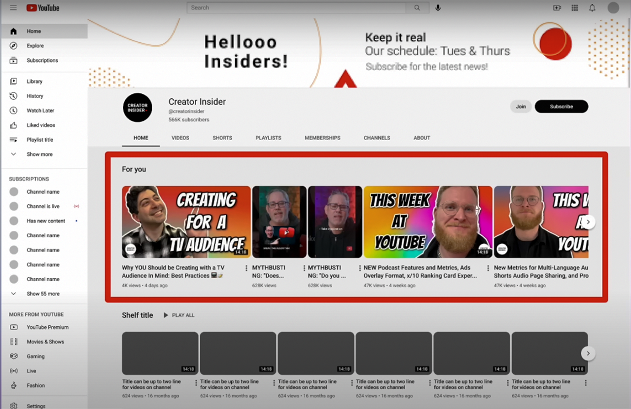 Previously, upon visiting your channel, viewers were greeted with a trailer or a featured video alongside some playlists. However, starting from November 20, 2023, a significant change awaits. Now, visitors to your channel will encounter a novel addition: the “For You” section. This dedicated segment will cater specifically to individual viewers, showcasing a personalized lineup of videos based on their unique watch history.